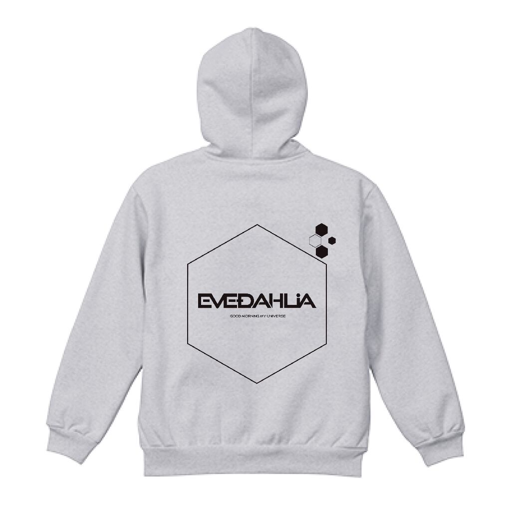 ⬡EVEDAHLIAのロゴとヘキサゴンが描かれた裏起毛のロゴフーディー(パーカー)。